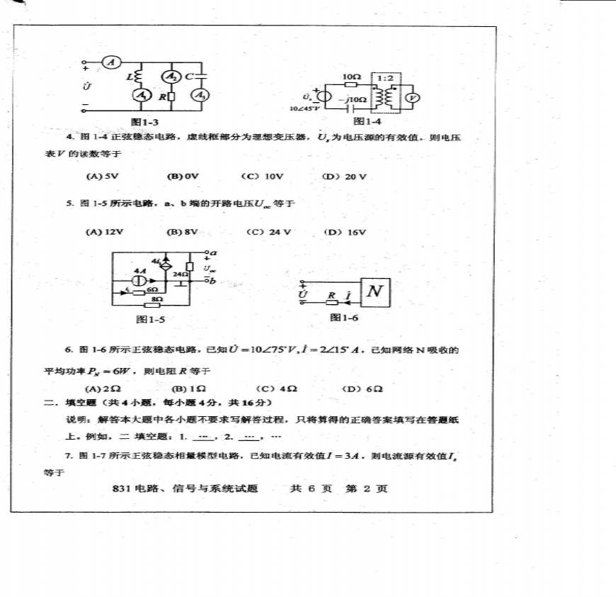 第页共页西安电子科技专硕考研资料 b 学习资料页 西安电子科技通信工程学院电子工程学院技术物理学院考研专业课历年,共小题,共小题,电流等于,等于,正弦稳态中,时电流表的读数等于,正弦稳态则电