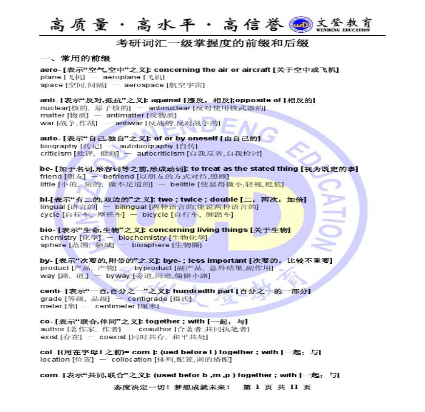> 2011考研英语词汇一级掌握度的前缀和后缀