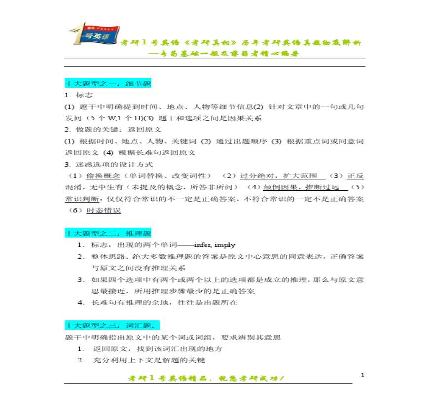 2011考研《英语阅读》十大题型的解决方法黄金版资料下载,喜欢的朋友可以下载收藏!
