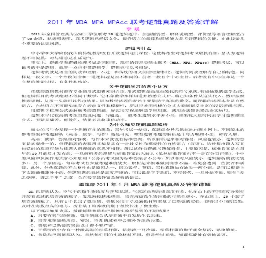 2011逻辑真题解析.pdf 免费下载