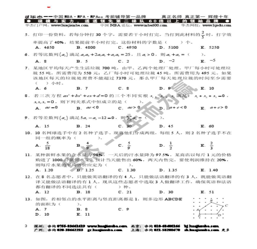 2011年10月份MBA联考综合能力真题.pdf 免费下载