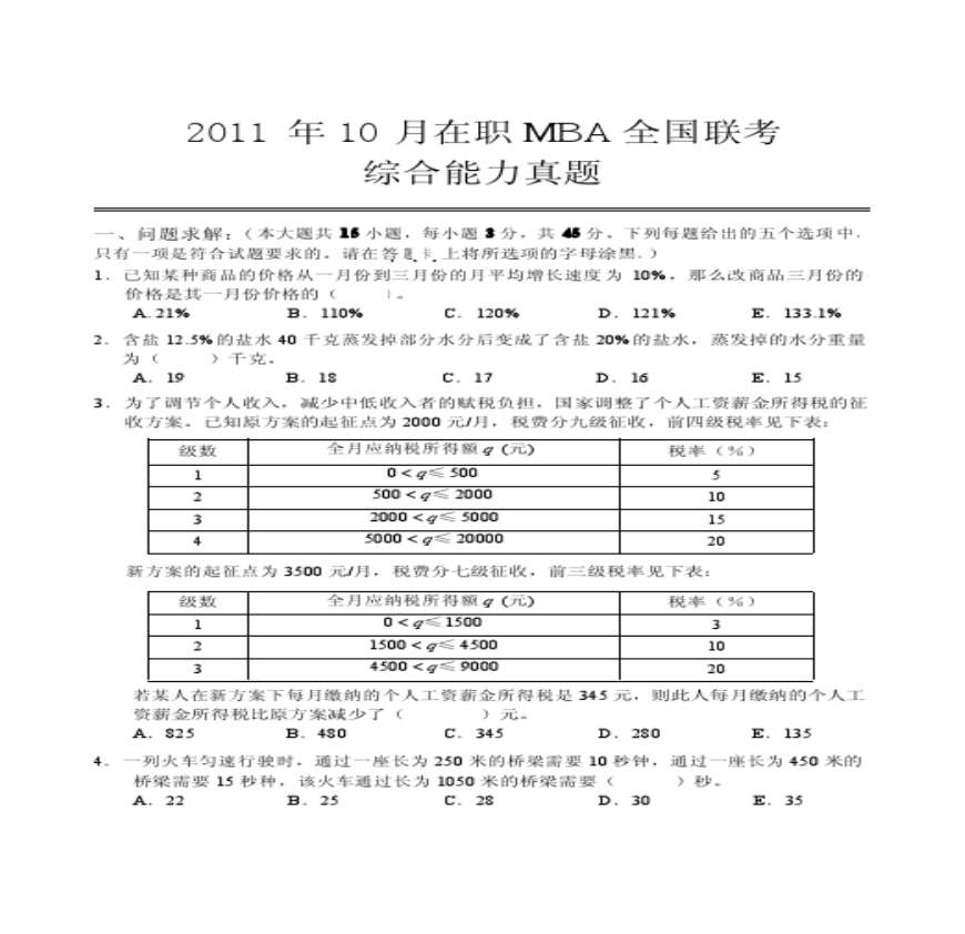 2011年10月在职MBA全国联考综合能力真题.pdf 免费下载