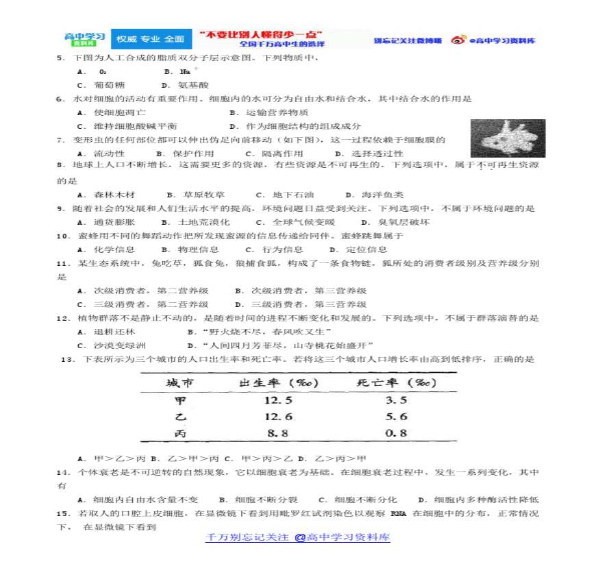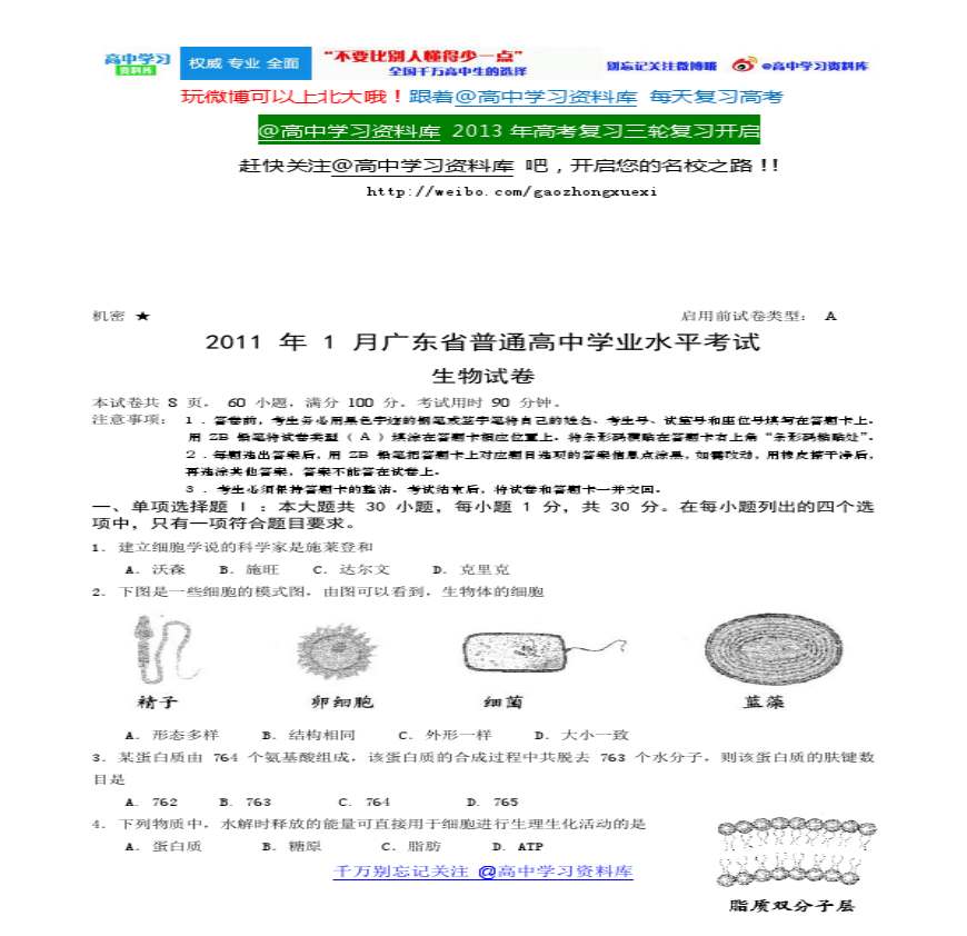 2011年1月广东水平考试生物试题(含答案).pdf 免费下载