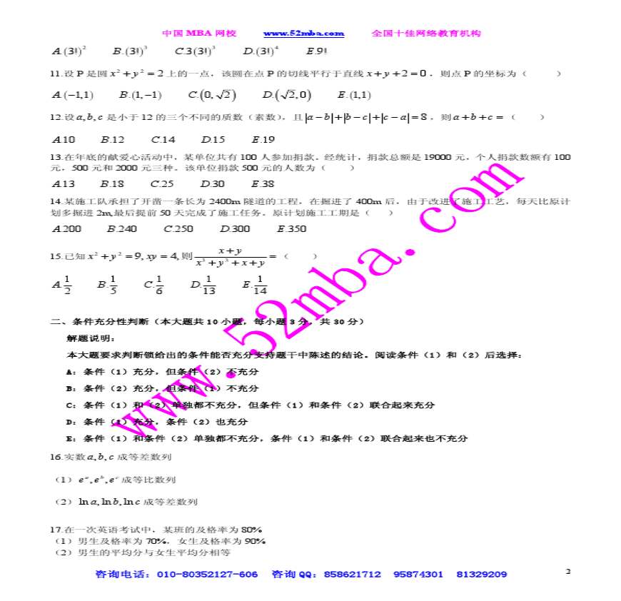 2011年MBA联考数学真题答案及解析.pdf 免费下载