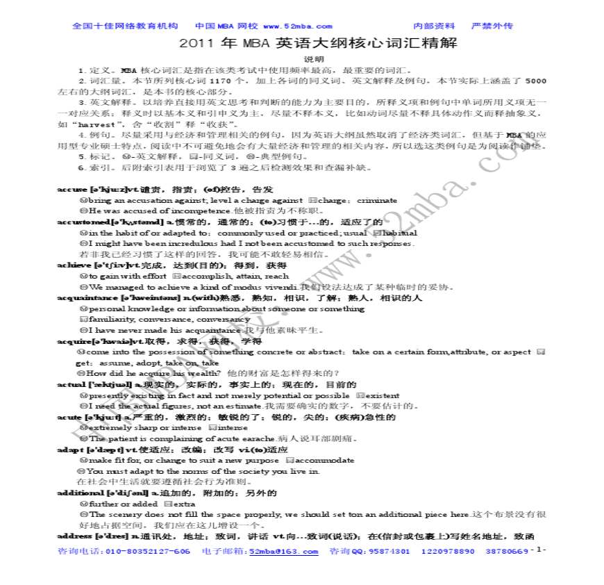 2011年MBA英语大纲核心词汇精解(一).pdf 免费下载