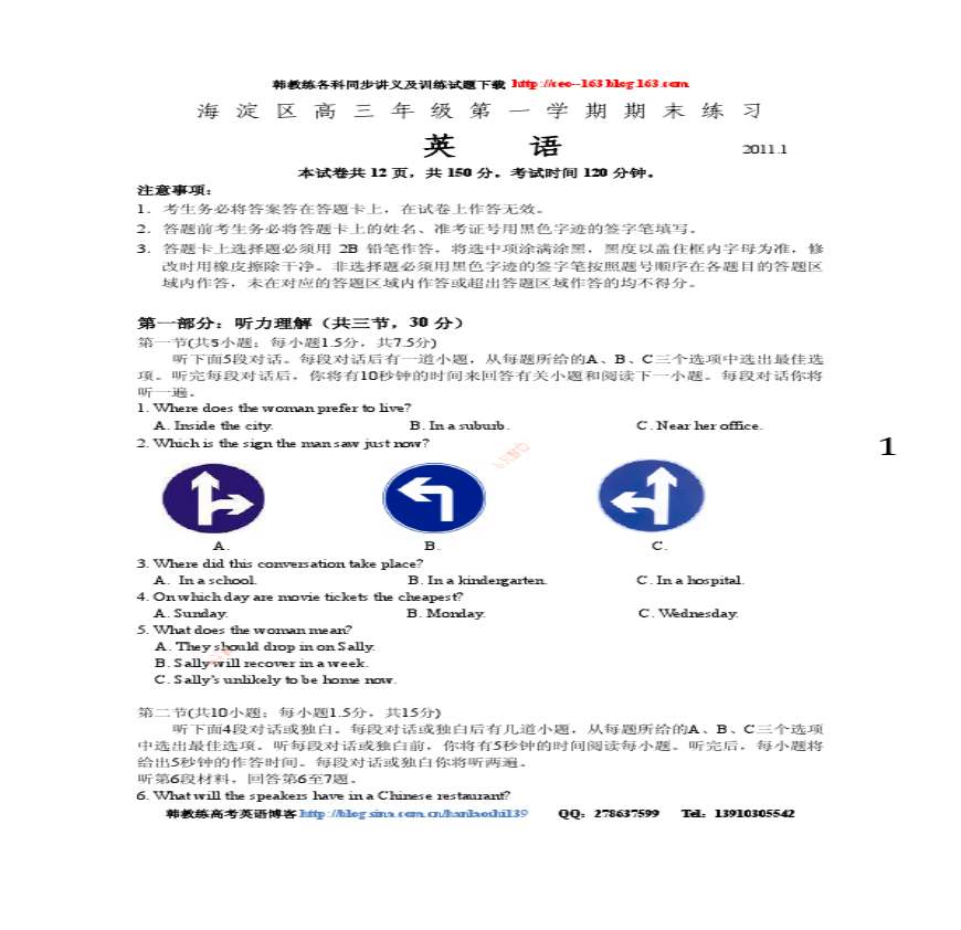 2011年北京市海淀区高三第一学期期末练习英语试题.pdf 免费下载