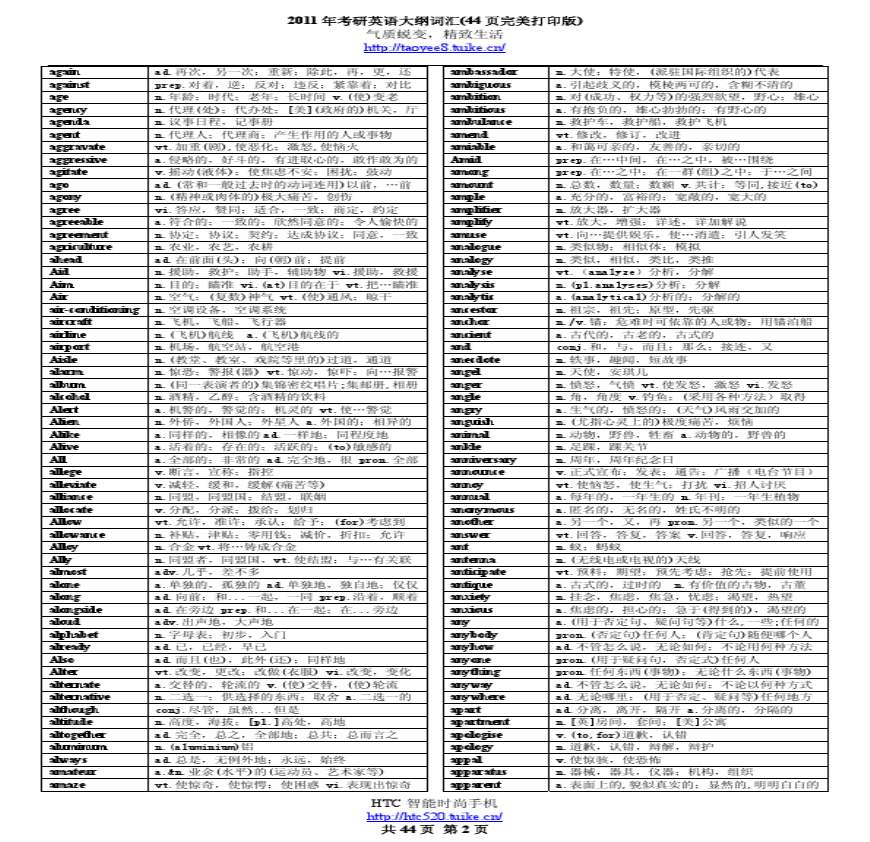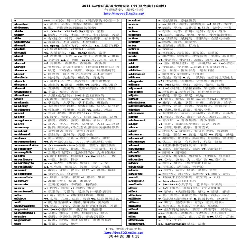 > 2011年考研大纲词汇方便打印版_免费分享_
