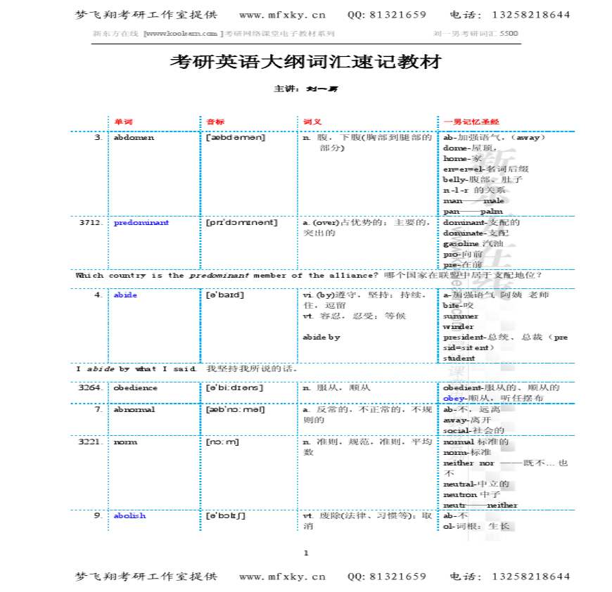 2011年考研英语刘一男最新5500词汇讲义.pdf 免费下载