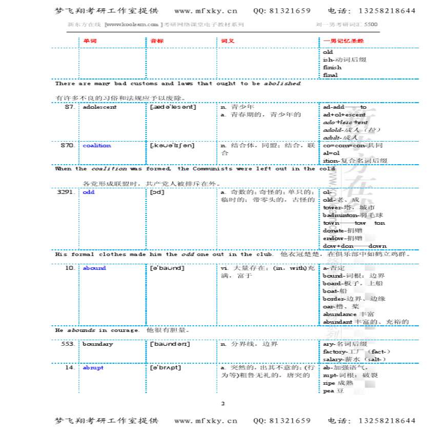 > 2011年考研英语刘一男最新5500词汇讲义