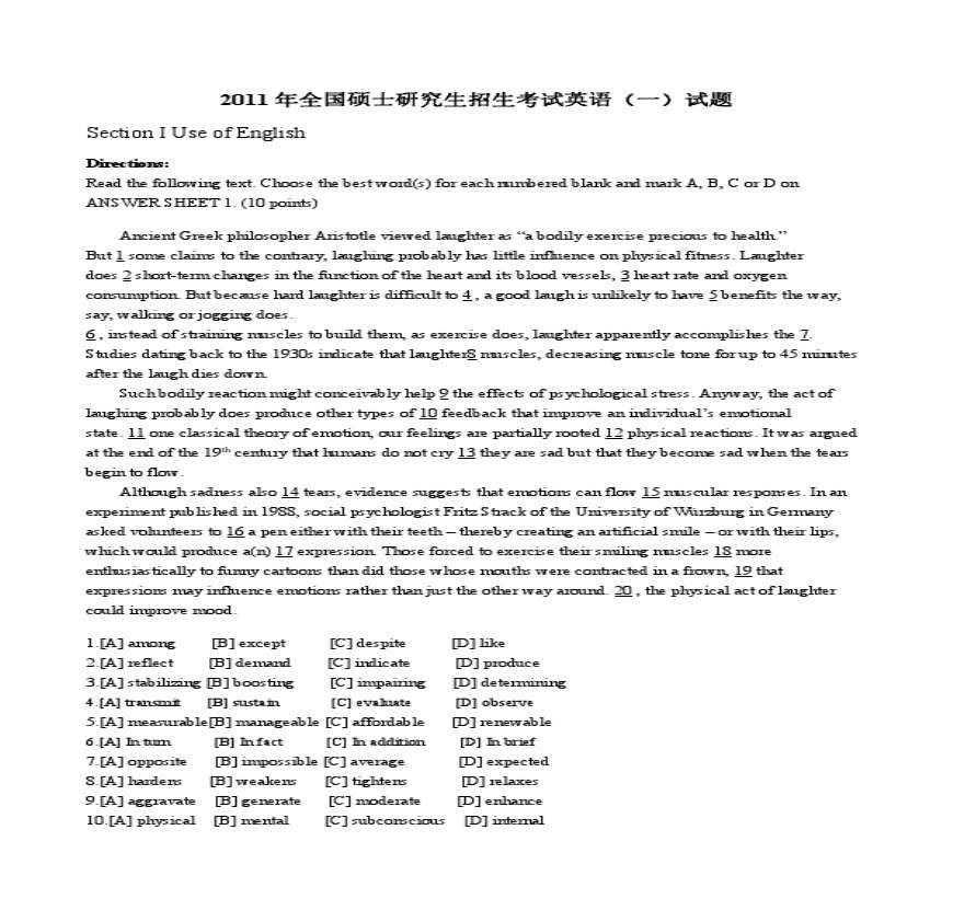 2011年考研英语真题及解析资料下载,喜欢的朋友可以下载收藏!