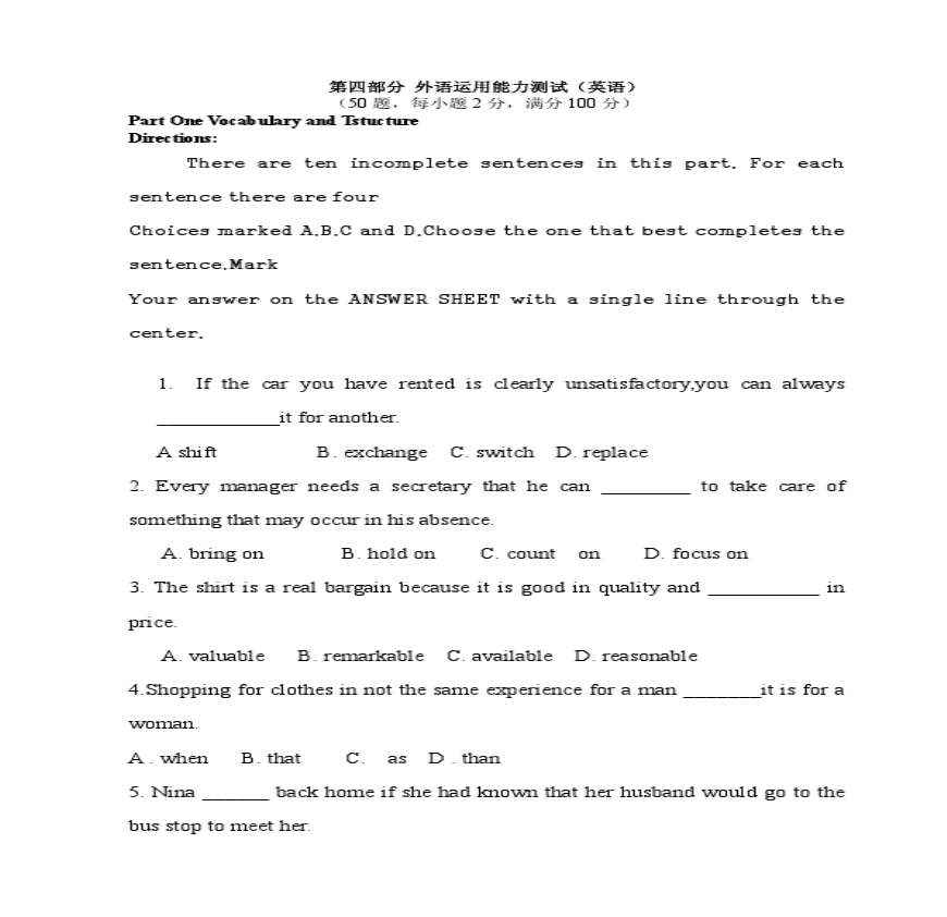 1990年全国硕士研究生入学统一考试英语试题及答案