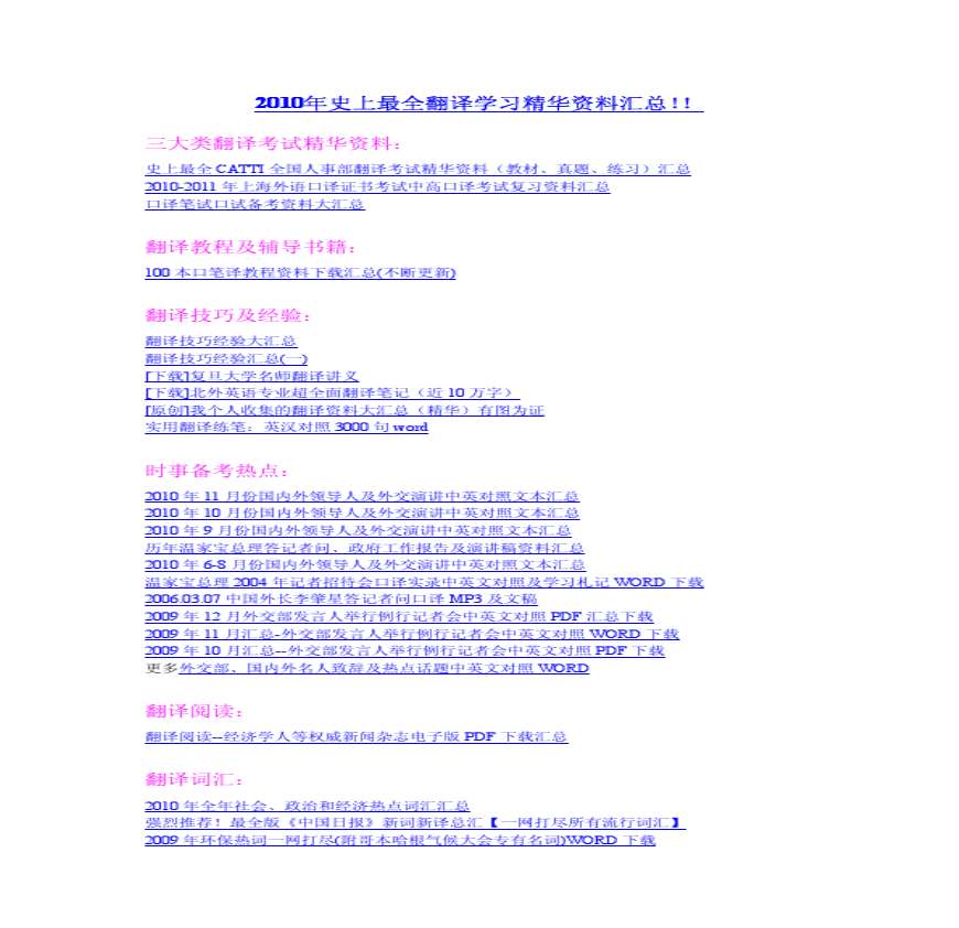 真题集汇总 学习资料页 [] [] 阅读顶上传页 加豆单举报认领展开 文档大小: M 文档页数: 页 顶 踩数: 收藏人数: 评论次数: 文 学习资料页 年史上最全学习精华资料汇总年史上最全学习精华资料汇总 三大类考试精华资料:史上最全 CATTI 全国人事部考试精华资料教材真题 学习资料 全真模拟试题及解析级最新修订版下载_ 学习资料 。