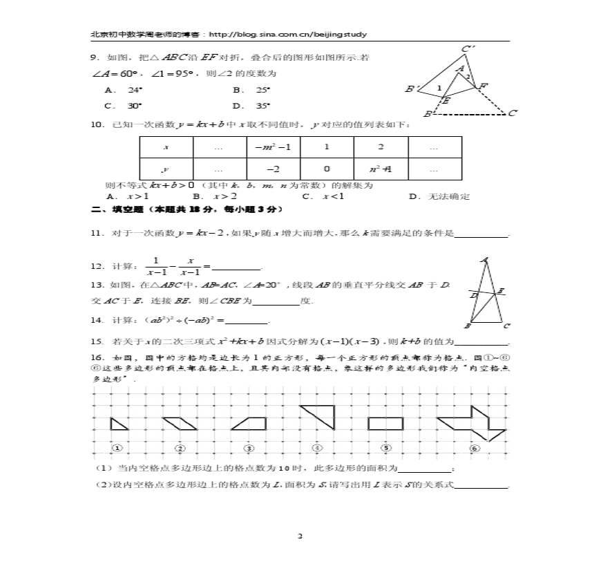 学习资料 第 题 分,其余每小题 分) 计算:π解: 如图,在△ ABC中,BDDC求证: 解:练习及评分参考 说明:与 年初二年级及(清晰版) 学习资料页 练习分数:分时间:分钟一、选择题本题共分,每小题分在下列各题的四个备选中,只有一个符合题意请将正确选项前的字 学习资料 练习一、选择题:(本题共分,每小题分)题号 DOC