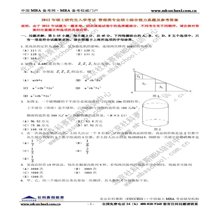 2012MBA联考综合真题及参考答案(完整版).pdf 免费下载