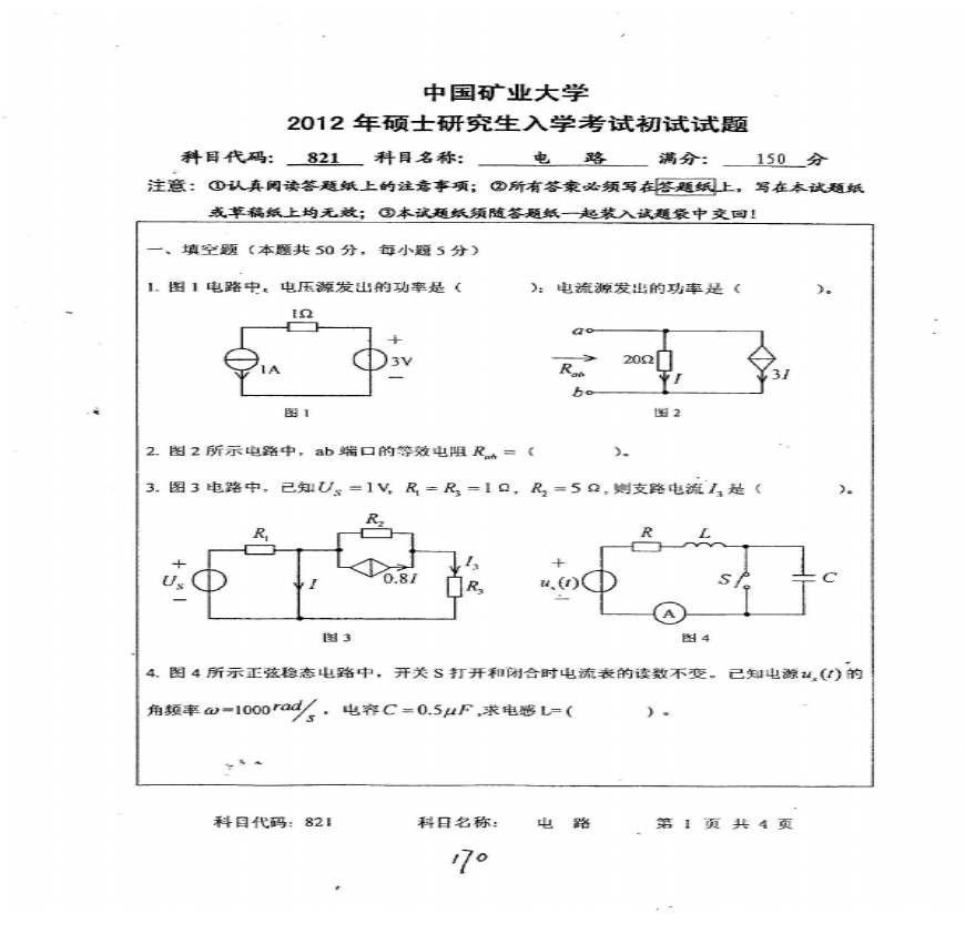 > 2012矿大考研电路真题