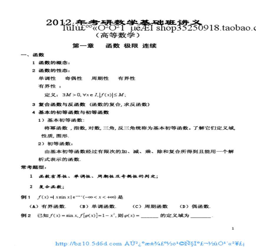 2012考研数学基础班讲义-武忠祥资料下载,喜欢的朋友可以下载收藏!