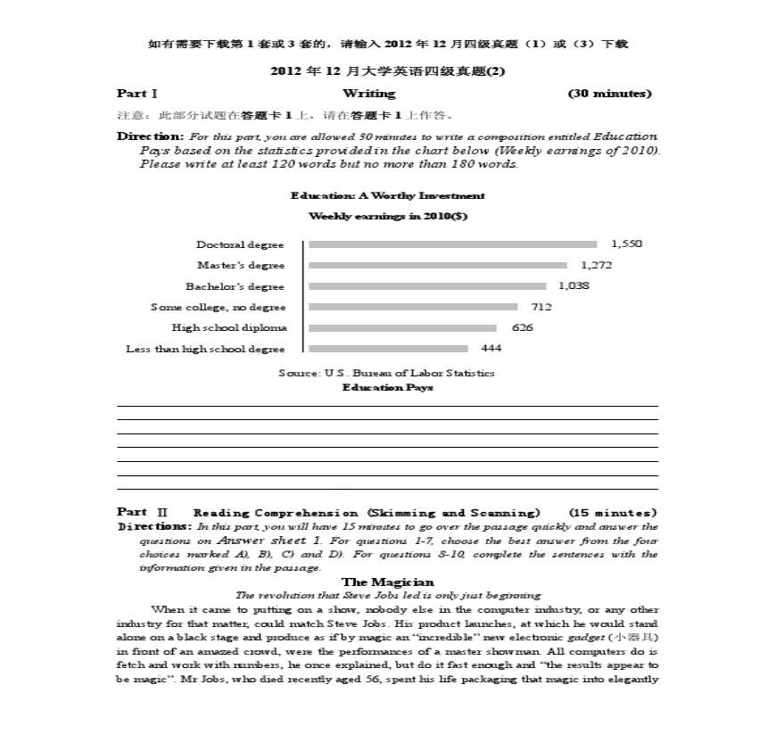 2012年12月四级考试真题(2)资料下载,喜欢的朋友可以下载收藏!