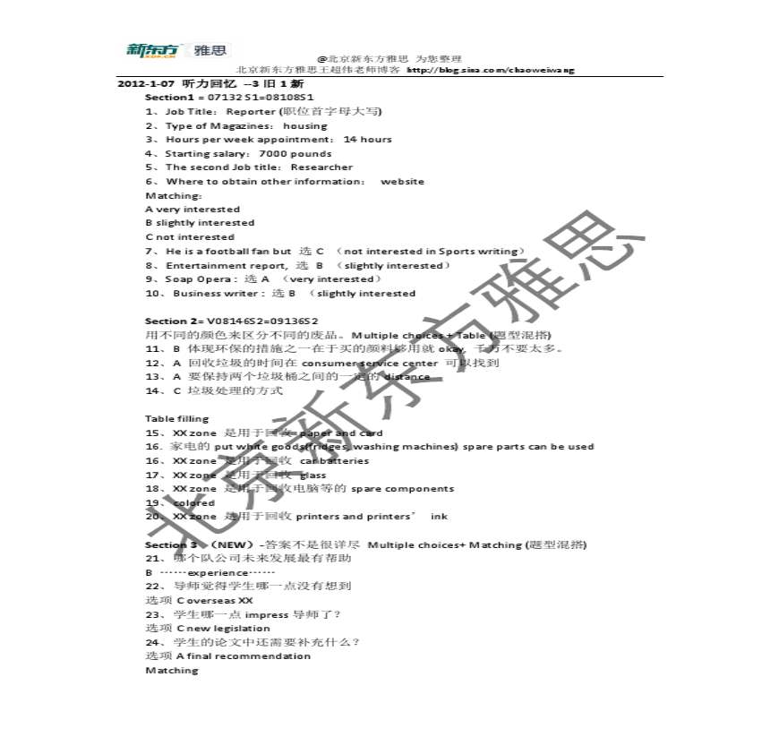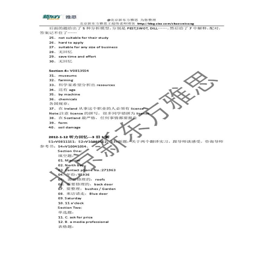 2012年1-6月雅思听力真题整理--北京新东方雅思听力名师王超伟.pdf 免费下载