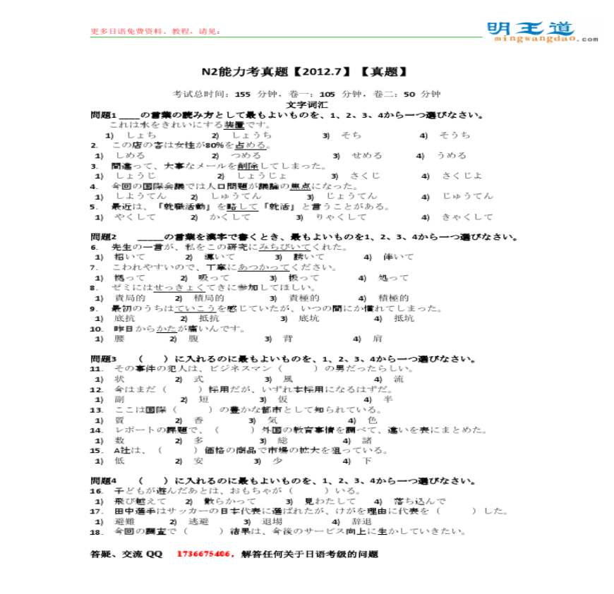 2012年7月n2真题 (1)资料下载,喜欢的朋友可以下载收藏!
