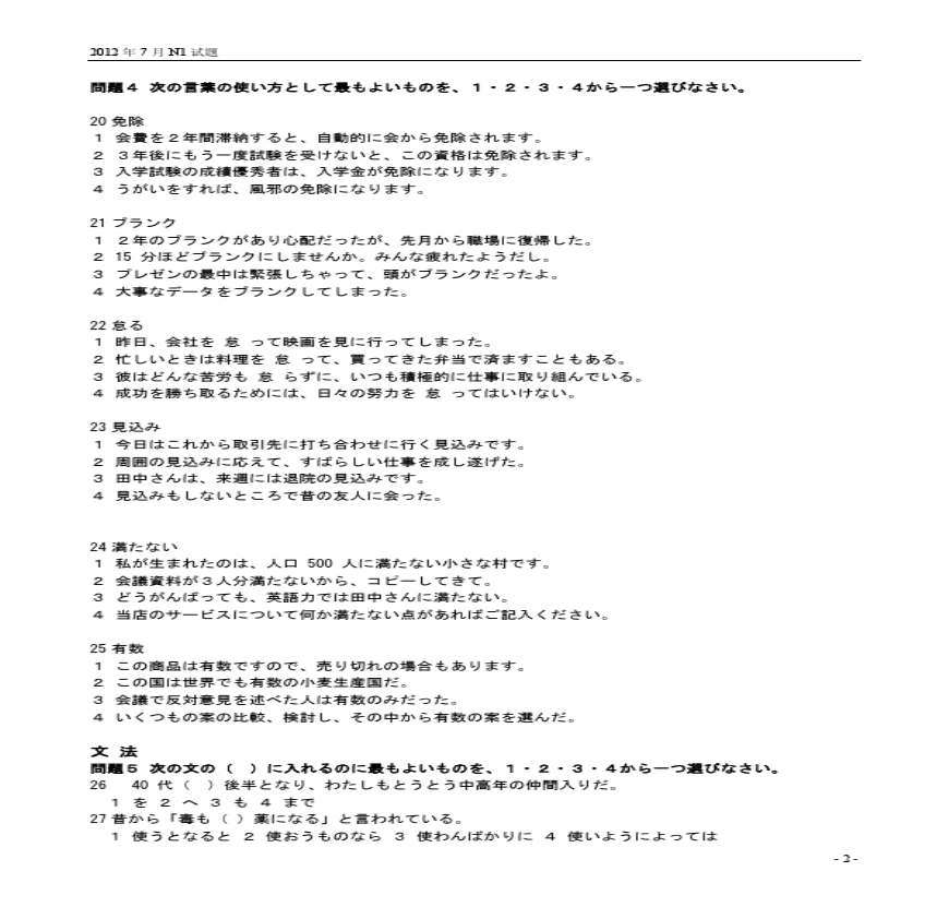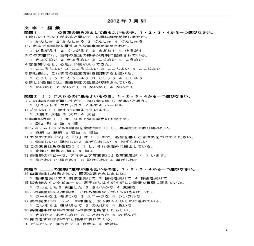2012年7月日语一级N1真题资料下载,喜欢的朋友可以下载收藏!