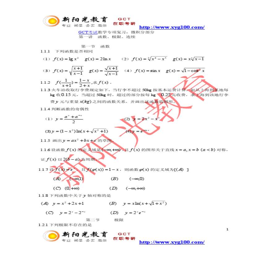 2012年GCT考试数学专项复习:微积分部分资料下载,喜欢的朋友可以下载收藏!