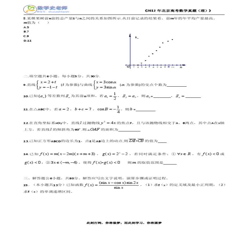 2012年北京市高考数学理科资料下载,喜欢的朋友可以下载收藏!