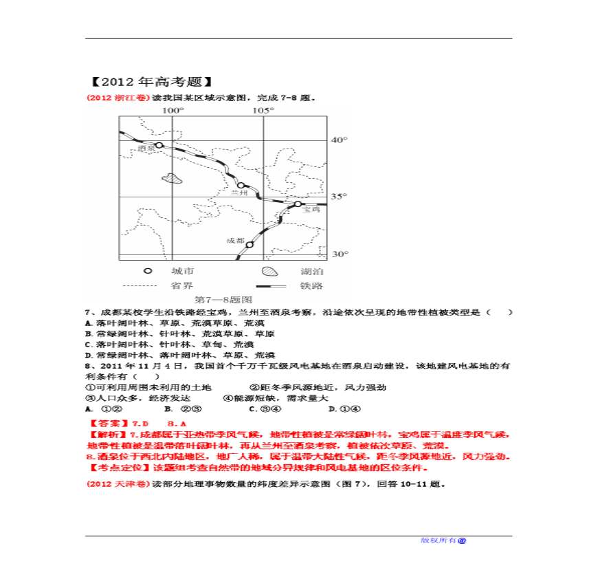 > 2012年高考真题考点汇编 自然地理环境的整体性与差异性