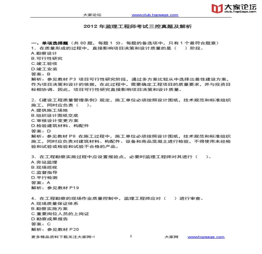 参考r r 参考一、单项选择题(共 题,每题个最符合题意)在质量形成的过程中,直接影响项目决策和设计质量的是( )阶段参考,监理工程师历年,注册监理工程师,监理工程师真题,公路监理工程师真题,造价工程师考试真题,助理工程师考试真题,司法