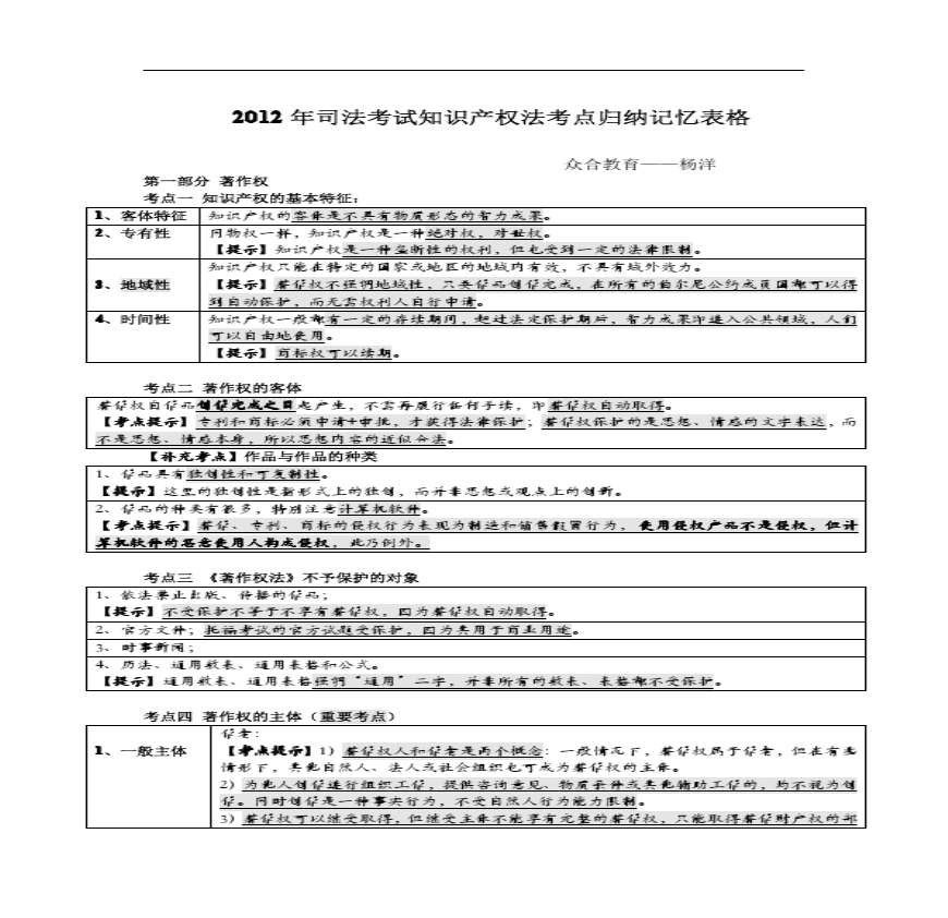 2012年司法考试知识产权法考点归纳记忆表.pdf 免费下载