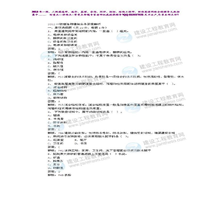 2012年一级建造师《建筑工程》考试真题资料下载,喜欢的朋友可以下载收藏!