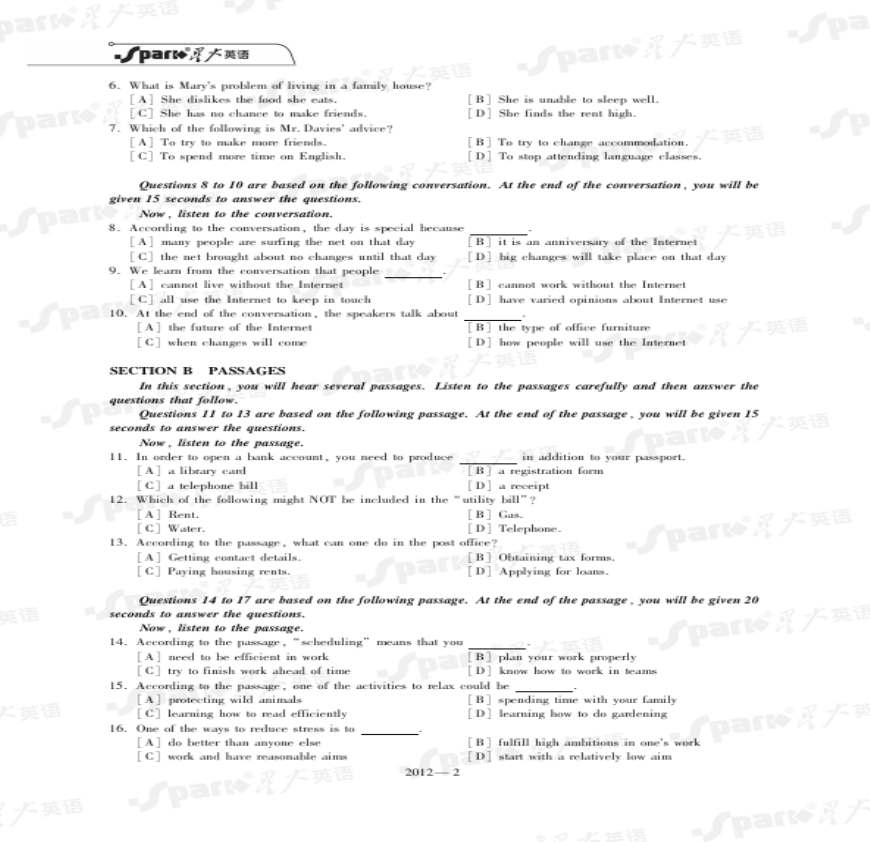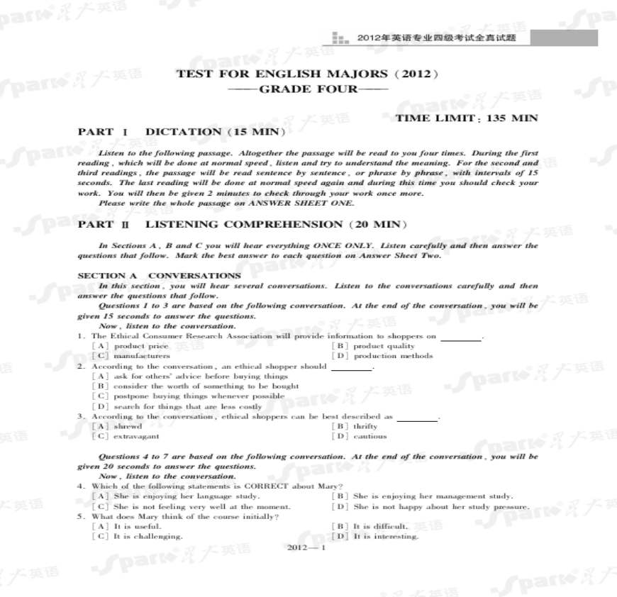 2012年英语专业四级真题及解析.pdf 免费下载