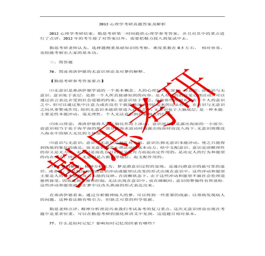 x 分 结束,勤思第一时间提供参考,并且对其中的重点进行了 勤思老师点评,这道统计考察了我们方差的基本知 学习资料页 心理学考研真题答案及解析心理学考研结束勤思考研第一时间提供心理学参考答案并且对其中的重点进行了点评年的考生 学习资料页 专业基础综合 凯程教育 一、单项选择题:~小题,每小题分,共分。