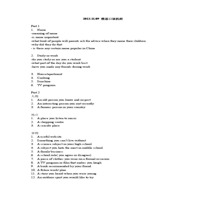 2013.11.09 雅思口语机经资料下载,喜欢的朋友可以下载收藏!