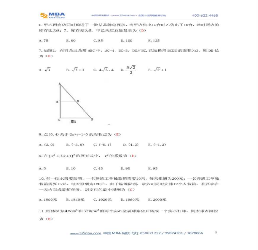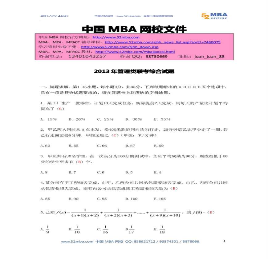 2013MBA联考综合真题及参考答案(完整版).pdf 免费下载