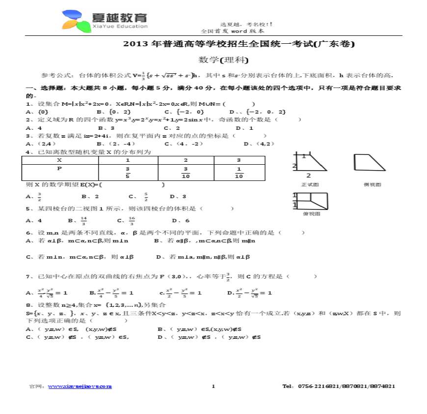 学习资料 试题(A卷)_新浪教育_新浪年月日_ 学习资料页 文档介绍: 数学(理科)一、选择题:本大题共小题,每小题分,共分,在每小题给出的四个选项中,只有一项是符合题目要求的设集合,,则(