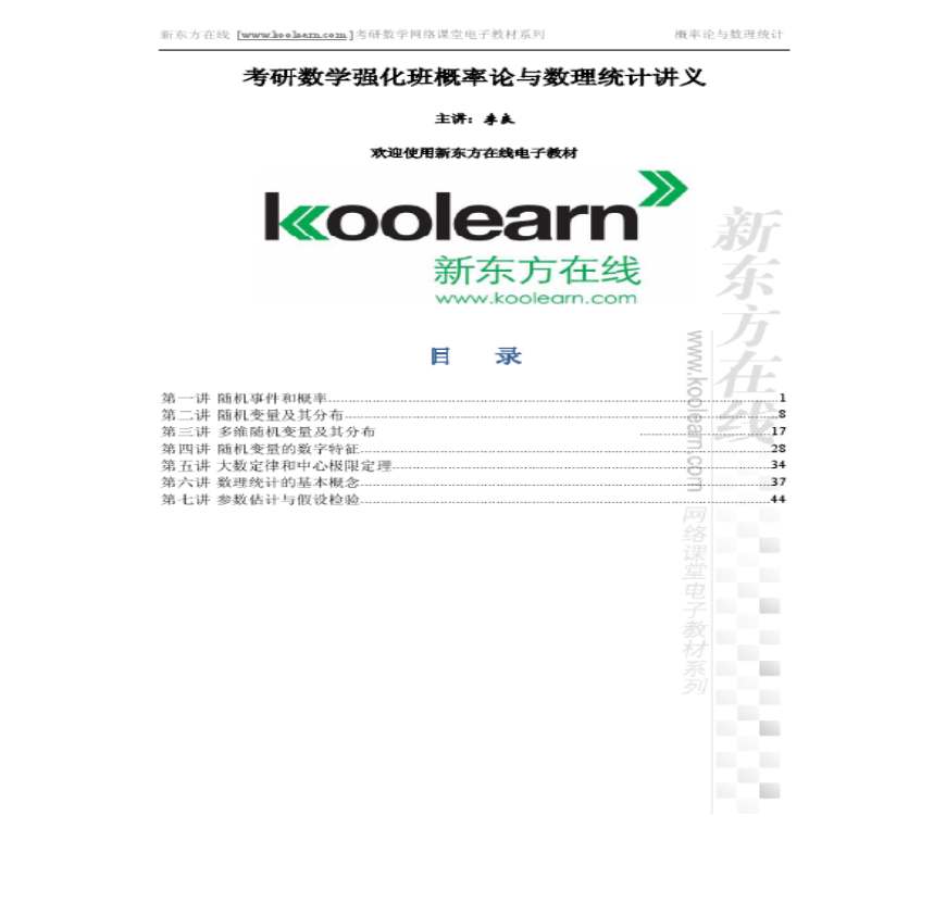 2013考研数学概率论强化讲义(李良)资料下载,喜欢的朋友可以下载收藏!