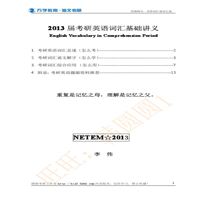 [宝典] [宝典],考研数学基础班视频,考研数学基础班,考研政治基础班视频,张宇考研数学基础班,红宝书考研英语词汇,考研英语词汇,刘一男考研词汇 海文—教育—视频高清在线: 简介:海文词汇 (李伟) 立即观看学习资料页 届讲义 E Vbr Cr Pr总述 (怎么考)考研词汇综合应用 (怎么xb