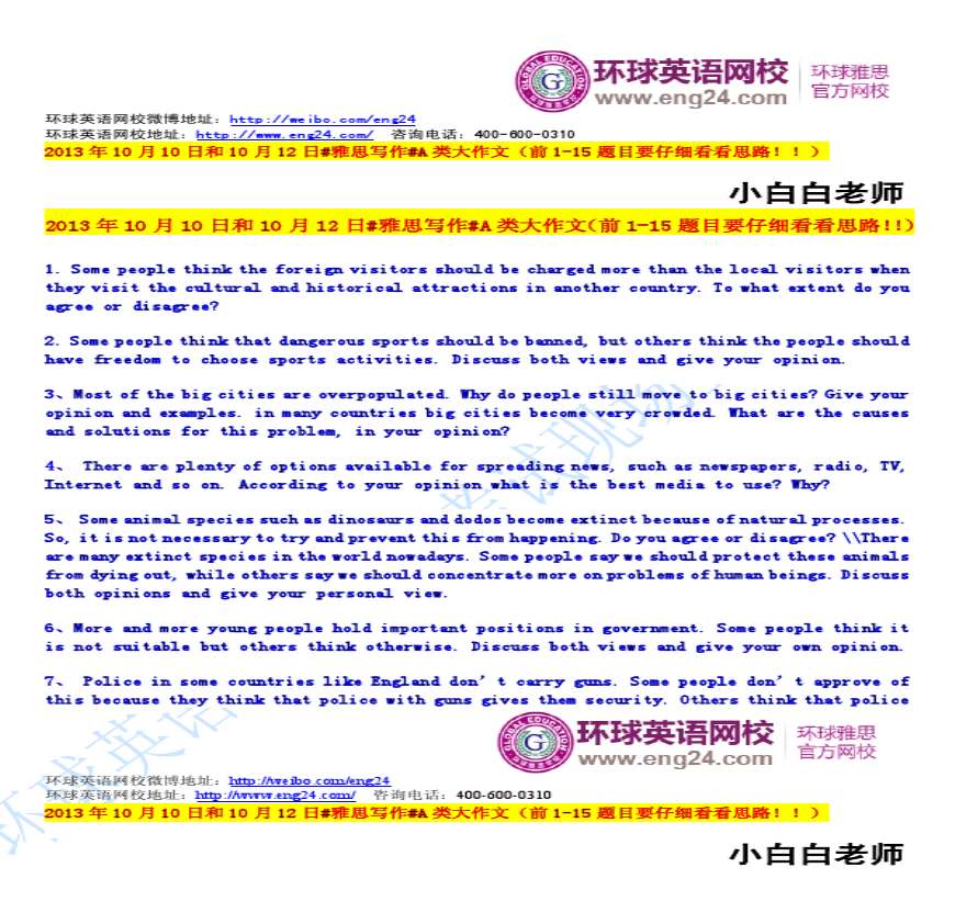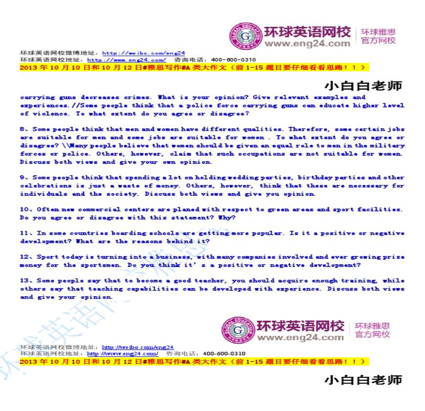 > 2013年10月10日和10月12日%23雅思写作%23A类大作文(前1-15题目