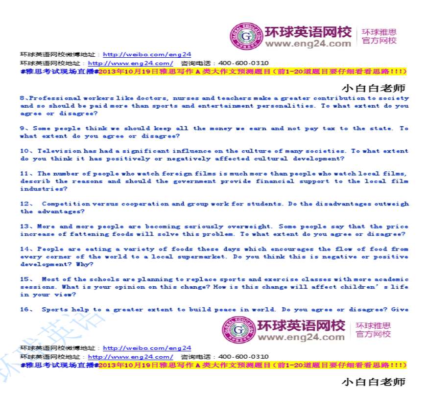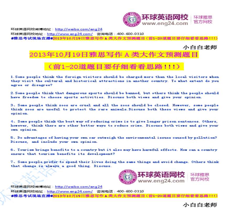 2013年10月19日雅思写作A类大作文预测题目(前1-20道题目要仔细.pdf 免费下载