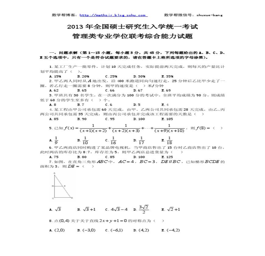 2013年MBA联考综合能力真题资料下载,喜欢的朋友可以下载收藏!