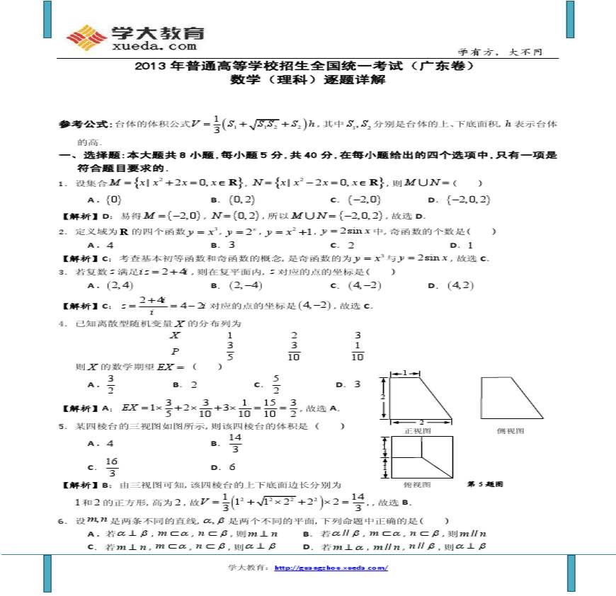 2013年高考真题——理科数学(广东卷)解析版 Word版含答案.pdf 免费下载