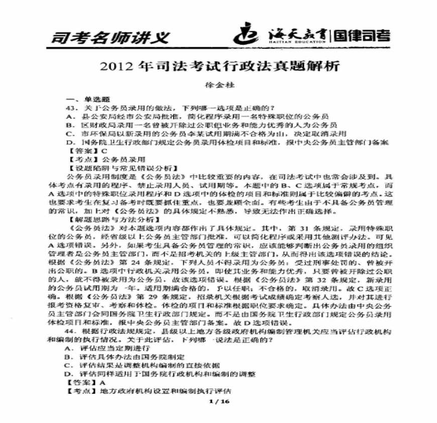 2013年海天真题解析班行政法徐金贵讲义资料下载,喜欢的朋友可以下载收藏!