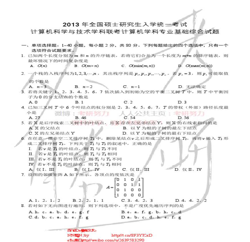 2013年计算机考研真题.pdf 免费下载