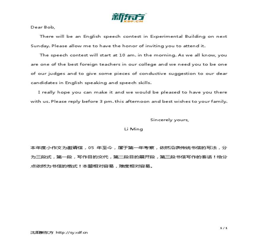 > 2013年研究生考试考研英语应用文范文真题—沈阳新东方版