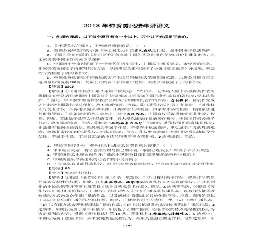 2013年钟秀勇民法串讲(180+3题)讲义.pdf 免费下载