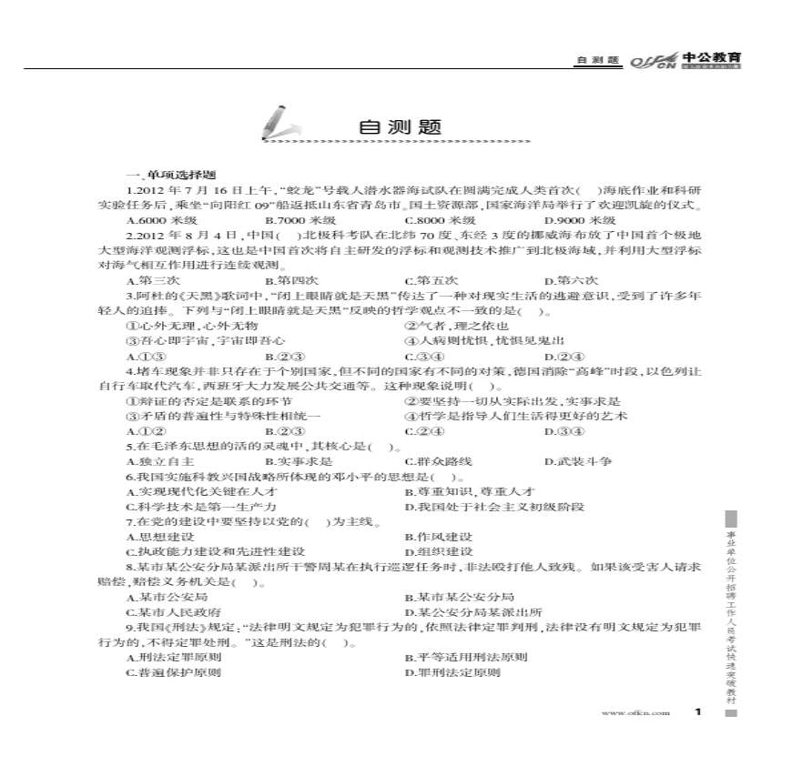 2013事业单位考试快速突破教材-15天公共基础知识快速突破_文前自测题.FIT)资料下载,喜欢的朋友可以下载收藏!