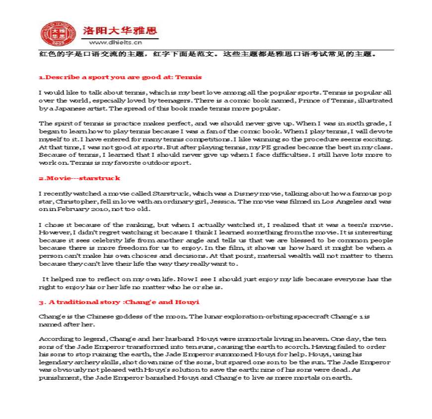 2013雅思口语考试范文资料下载,喜欢的朋友可以下载收藏!