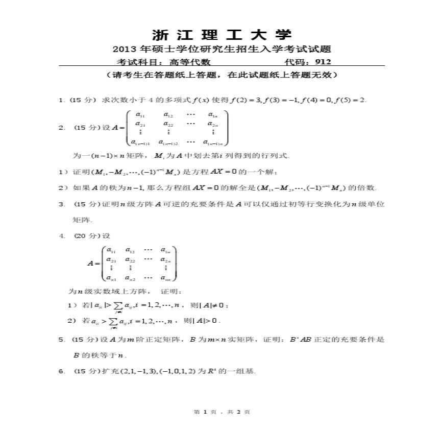 2013浙江XX高等代数资料下载,喜欢的朋友可以下载收藏!