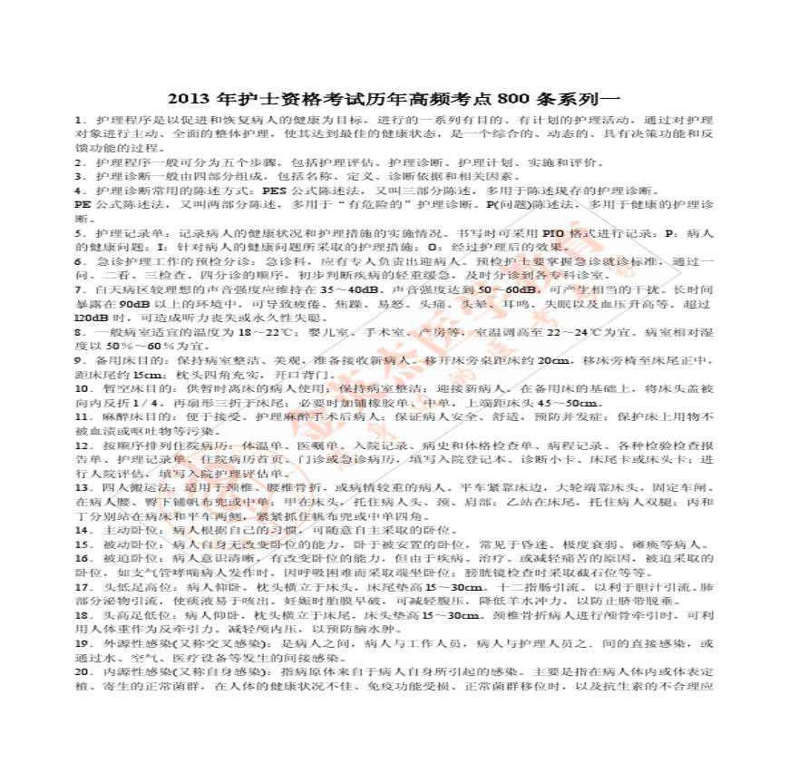 2014护士资格考试历年高频考点800系列【精品】资料下载,喜欢的朋友可以下载收藏!