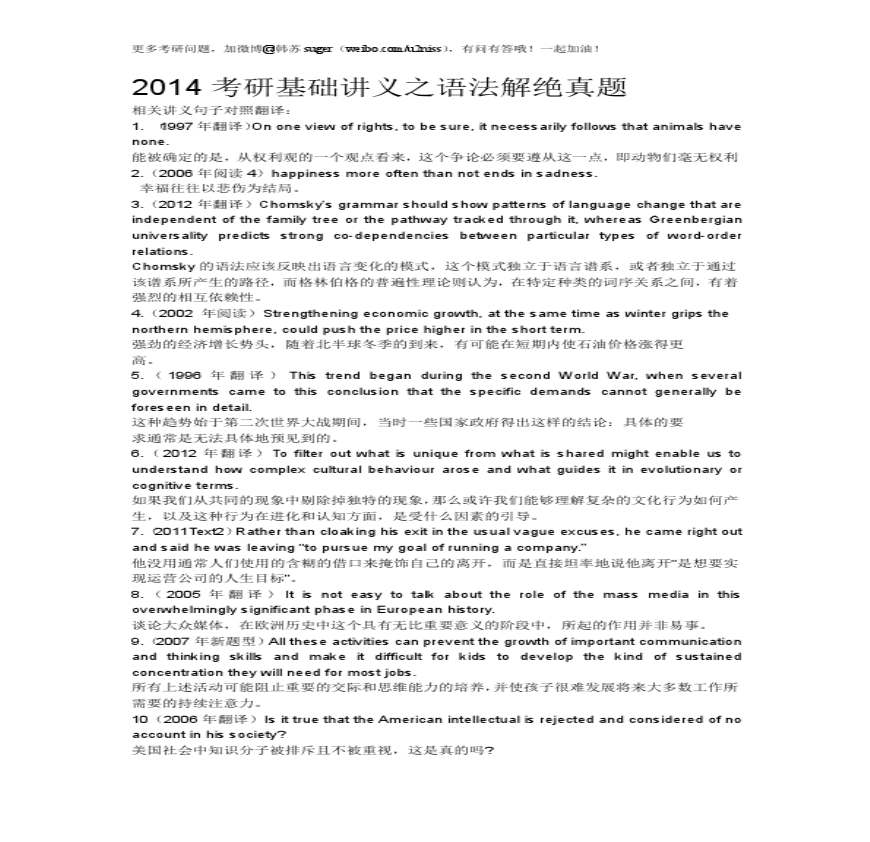 > 2014考研基础讲义之语法解绝真题(对照翻译)